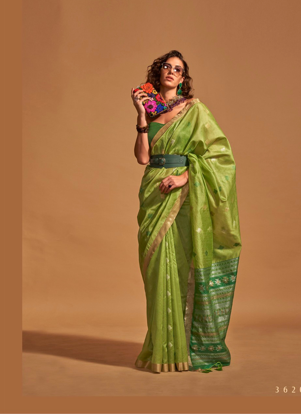 Add a vibrant twist to your traditional wear with the Mystique Moss Silk Saree Ensemble! The handloom weaving and intricate thread and zari work add a touch of luxury and cultural heritage. Versatile for any occasion, this Kanjivaram saree is a must-have in every woman's wardrobe. 🌺