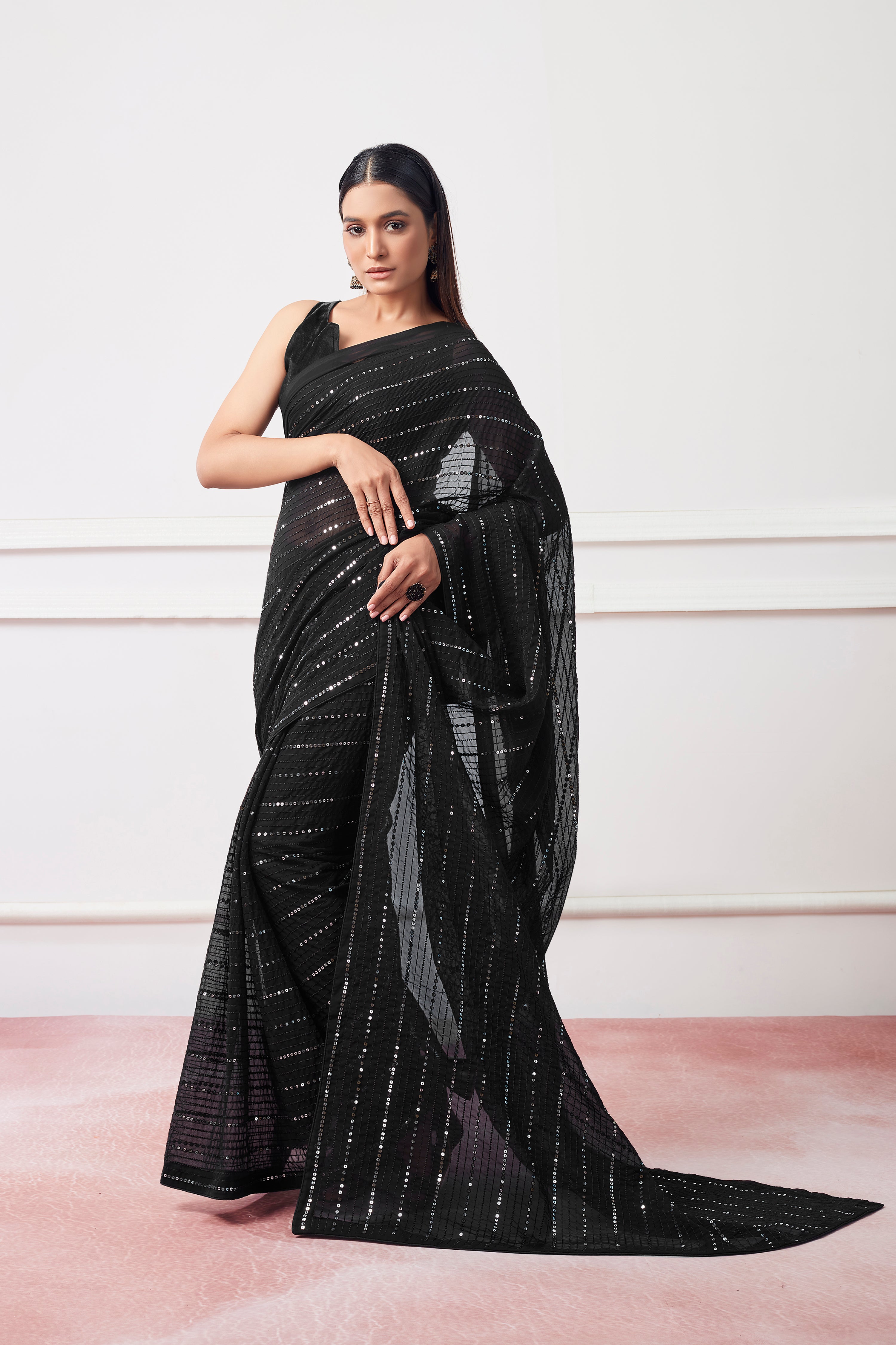 Be the talk of the party in our Nakshatra Black Embroidery Saree! This stunning piece features shimmering art silk fabric and intricate embroidery work. Perfect for any occasion, this saree will have you dressed to impress. Grab one now and slay the day!