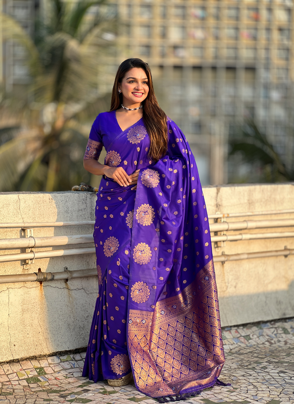 Get ready to dazzle in this Nakshatra Blue Soft Silk Dual Zari Saree! Made from moonga silk fabric, it features traditional Peacock Motifs that add a rich, elegant, and traditional touch. Perfect for parties, traditional events, and ceremonies like haldi and mehendi. These vibrant and beautifully designed sarees are sure to make you stand out in the crowd! Note: Color may slightly be different from the actual item due to photographic lighting sources or the monitor's settings.