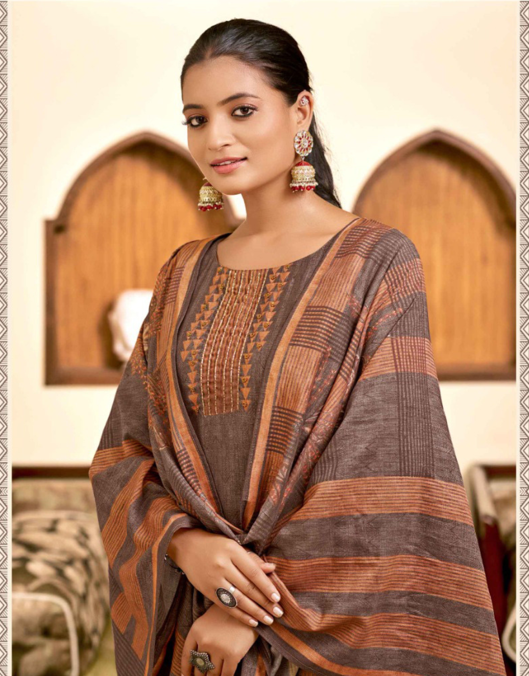 Turn heads wherever you go with the Nakshatra Digitally Print Brown Readymade Suit! Crafted from a luxurious blend of brown and gold silk and viscose, its vibrant digital prints create an irresistible charm. Complete with a matching bottom and dupatta, this suit offers a perfect blend of playful style and elegant comfort—ideal for brightening up your office or daily wardrobe. Note: Color may slightly be different from the actual item due to photographic lighting sources or the monitor's settings.