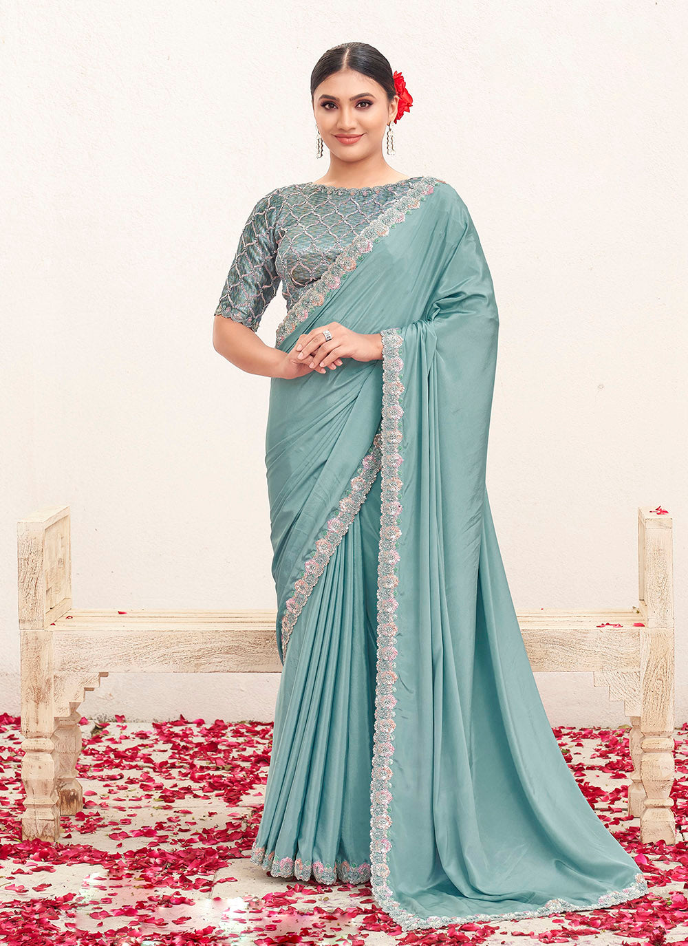Turn Heads in Every Occasion with This Stunning Firozi Designer Saree 💫
