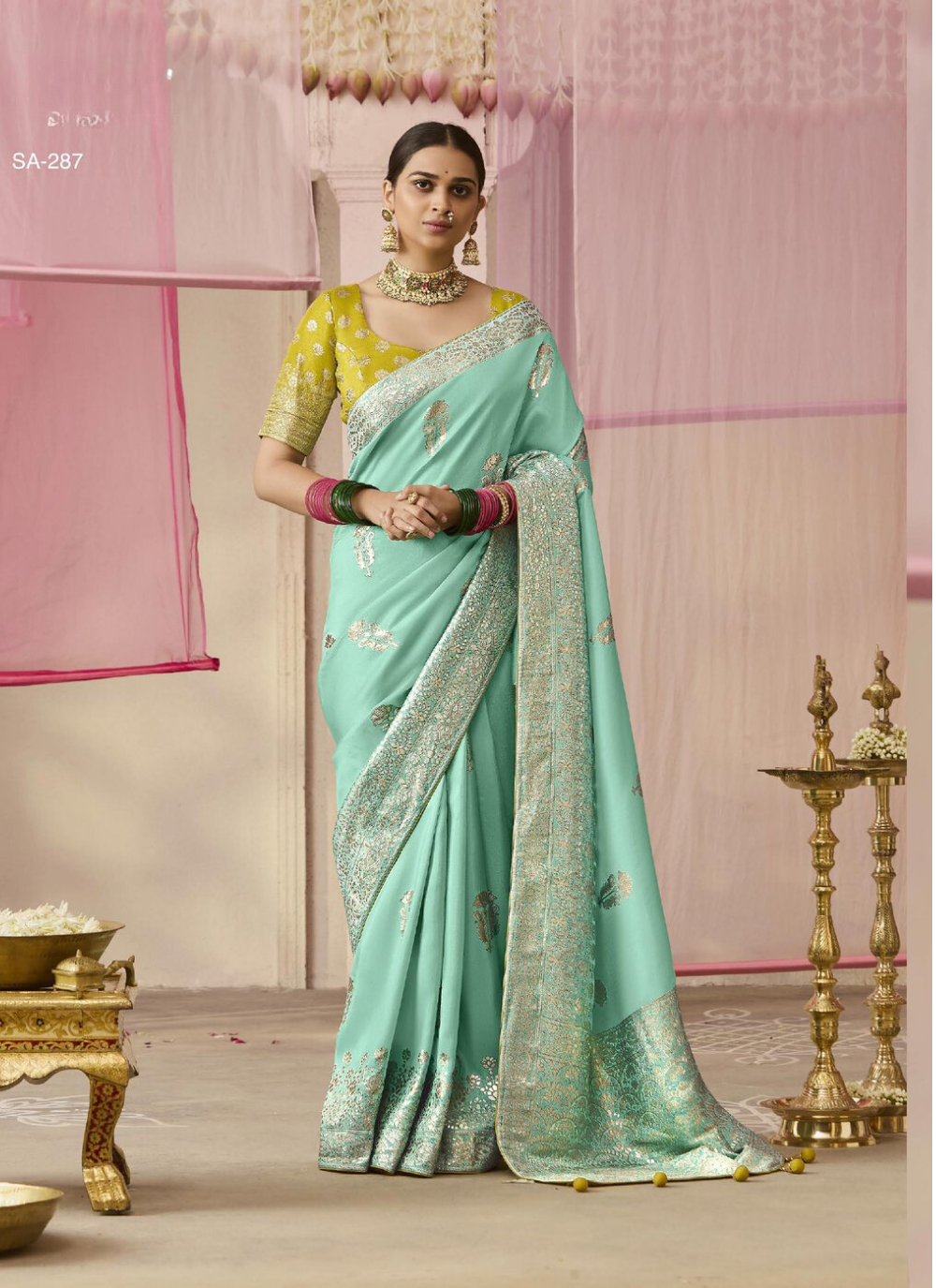 Introducing the Nakshatra Green Viscose Silk Saree, a lustrous dola viscose silk saree with a beautiful flower weaving pattern. Perfect for any occasion, add a touch of vintage grace to your style!