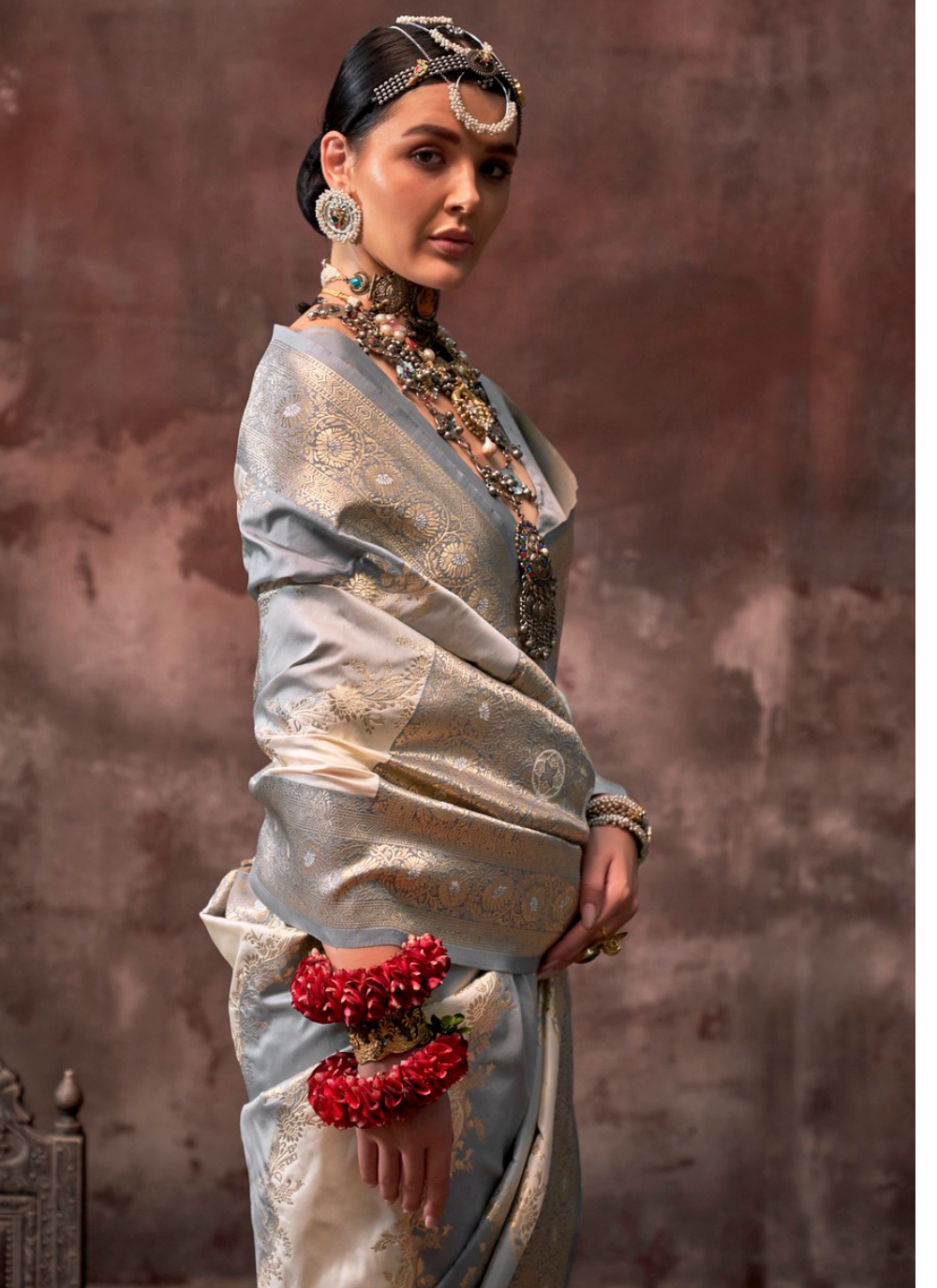 Experience the luxurious feel and beauty of tradition with our Nakshatra Grey Silk Saree. Handloomed with rangkat silk and intricate weaving, this dual-colored saree features a zari border inspired by nature and tribal art. Perfect for festivals and weddings, it's a true masterpiece of elegance.