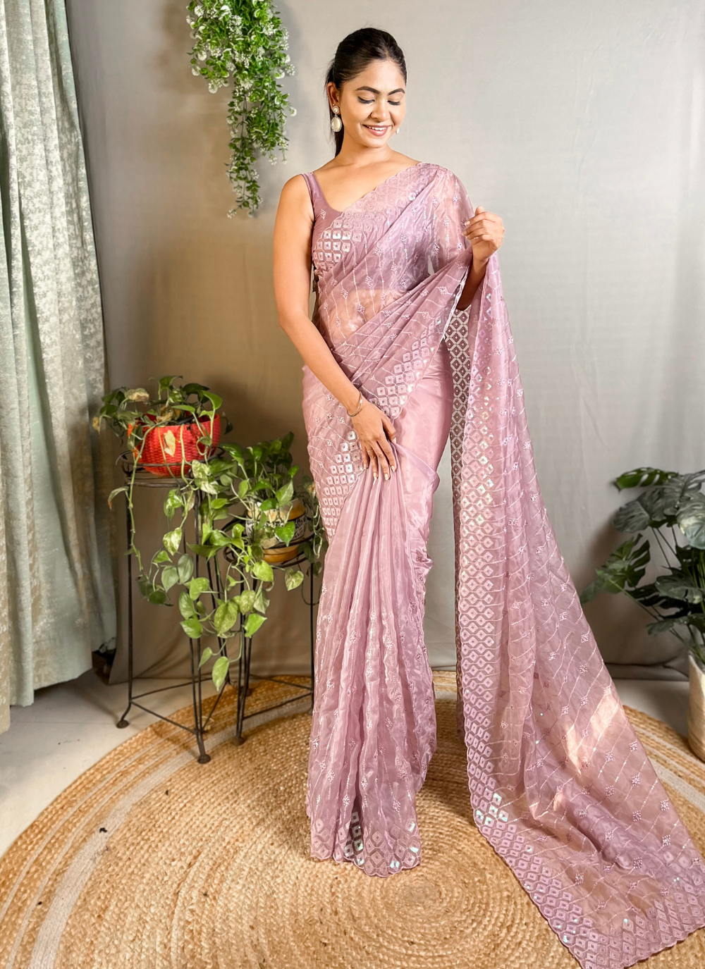 Add a touch of sparkle and glamour to your wardrobe with the Nakshatra Lavender Embellished Sequence saree! Made from luxurious crystal silk fabric, this saree features eye-catching designer embroidery and sequinned details. Perfect for any occasion, this saree is sure to turn heads and make you feel like the life of the party! 💃 Note: Color may slightly be different from the actual item due to photographic lighting sources or the monitor's settings.
