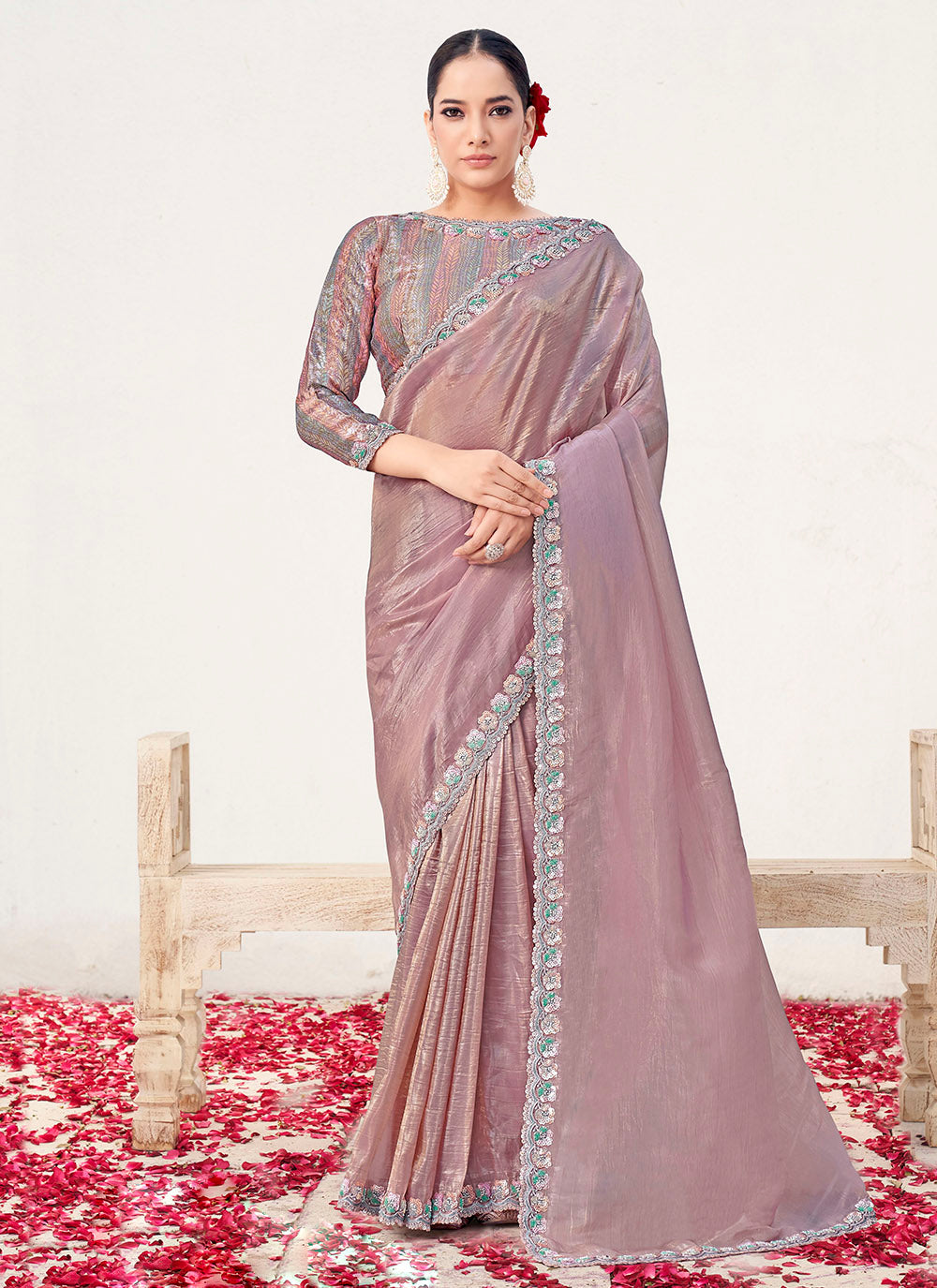 Turn Heads with Timeless Elegance – Designer Party Wear Saree in Onion Crush Silk