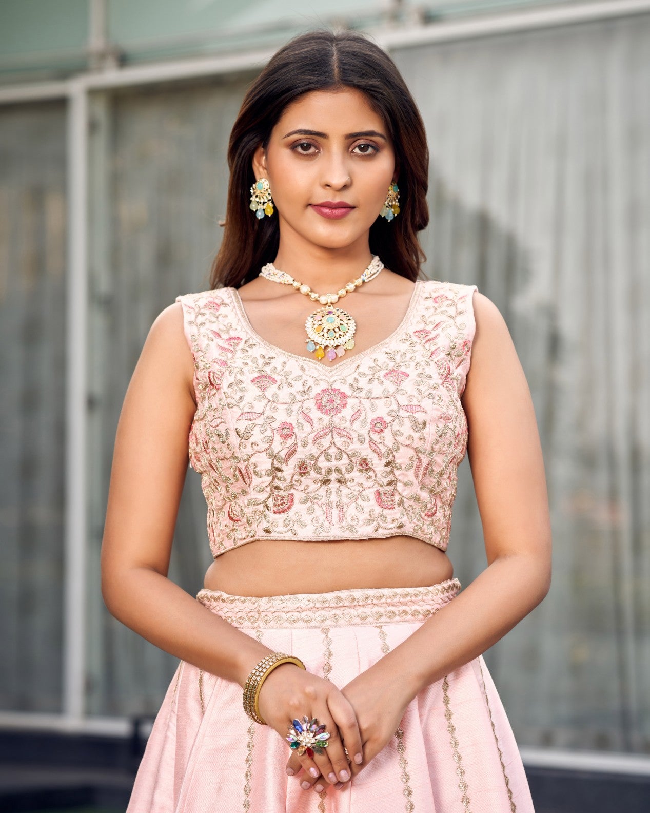 Elevate your style with our Pink Opulence Lehenga Choli. Made of Art Silk with designer embroidery work, this baby pink outfit comes in sizes S(34)-XXL(42). Get a designer look with minimal effort. Don't wait, grab yours today!👀