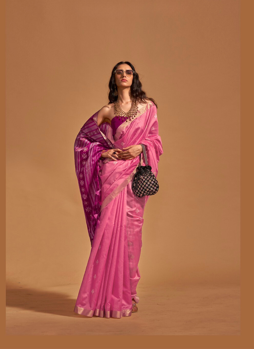 Wrap yourself in elegance and grace with our Royal Orchid Ensemble, a Woven Kanjivaram Silk Saree in vivid colors. The luxurious weight and texture of the silk drapes beautifully, perfect for special occasions. Combining tradition and contemporary fashion, this saree is a timeless treasure for any woman's wardrobe.